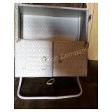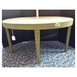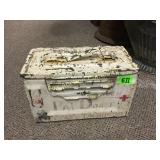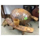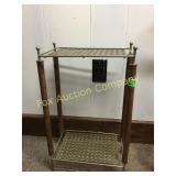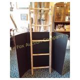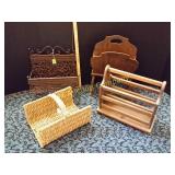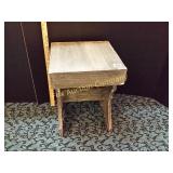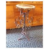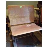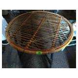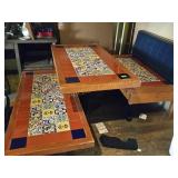 39" tall, decorative hand woven wall hanging 758 Hand carved table One side is used for dips (pedals come off, flip over to play checkers!! 18" high 760 Tile and wood table and benches Heavy metal pipe legs!! Came from Chili's restaurant we think 761 Tile and wrought iron coffee Table Edges a little scuffed otherwise great shape 50x30 764 Wicker cabinet with towel holder 23" high, 18" wide 765 Old school desk, wrought-iron base Little school yard graffiti! ! In great shape 766 Small Wooden table