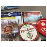 Liquidation Auction of beer signs, breweriana, tools, Coca Cola, decor, furniture, collectibles and a ton of Man Cave items! 400 You can bid live on items as they close! If a bid is placed in the last 2 minutes as they close the bidding will be extended 2 minutes, This is called a "soft close". 400 Call Jenny if you need a different pick up time! She will coordinate a pick up time by appointment if you call her at 641-745-0864! 400 Credit cards will be charged at close of auction. Please read terms and conditions before bidding! 401 Stroh's Beer Hanging Lighted Sign for Bar Pool Table Light WORKS Made of Plastic. One corner missing. See picture. 38" X 9" 402 Display Case on pedestal-6 Sided 37" wide by 38" High 405 Budweiser Texas Rangers Sign