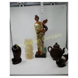 Hand carved hair made of husk, beard of grass 1 foot high Unique 756 23" high hand carved wooden table with wooden statue 757 Hand painted mask from Australia