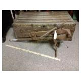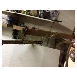 42" long Needs a bulb 852 Small table made from trundle sewing machine 24" wide,15 high, 15 deep 853 Antique harness . RUSTIC DECOR Could be used to hang pics.. options are endless!! 6 1/2 feet long 854 NEW GOODRICH trundle base