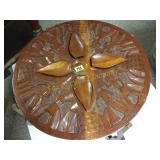 40" .over 3 feet tall! Nose has been broken 663 Hand carved walnut and cherry Shelves Walnut 17" Cherry 23" 664 AMAZING OLD NORWEGIAN TRUNK!