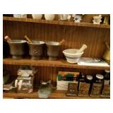 Vintage in North Richland Hills This home belonged to a pharmacist. There are lots of mortar and pestle sets, collectable bottles, vintage coffee pot, pharmacy prints and artwork, a vintage wooden measuring scale and more...There are books in everyroom. Kitchen: full of vintage kitchenware: 4 pc pyrex mixing bowls, enamel cookware, Tupperware, cast iron skillets, small appliances, red keurig one cup coffee maker, Kenmore gas range and oven, Montgomery Ward side by side frig and upright frig in garage. Office has antique typewriter, adding machine, binoculars,2 desks, computer flat screen, printer, dell laptop, office supplies and lots of bookcases, vintage metal typing table, printer cart, file cabinets and office supplies. Living room has several chairs, small oval table, roll top desk, collection of vintage Christmas salt and pepper shakers, as well as a antique child's dish set. There are pharmacy cuff links and tie tacks, watches and pocket watches, pen knives, cigarette lighters, earrings, necklaces, pins and other jewelry. There are 2 harmonicas. There are vintage curlers and an antique gas curling iron heater and tongs. There's a large and matching smaller braided rug as well as several older orientals. 5 guns: Colt 1905 Police positive 38 special revolver Colt automatic vest pocket caliber 25 pistol 1917 Springfield model 87A 22 long rifle Fabrique nationale D'armes de querre Herstal rifle, made in Belgium - automatic Browning Red Ryder BB gun & bb's Bedroom 1: loads of lovely crocheted and embroidered vintage linens, vintage postcards, games, sewing notions, toys, Zippy the chimp, view master stereoscope, scarves, and collectables. Bedroom 2 has several midcentury modern pieces - dresser and mirror, double bed w/ headboard, a small night stand, military uniforms, old quilts and more... Bedroom 3 has luggage, vacuums, a vintage trunk, toy box, dressing table and benches, a desk , and lots of artwork. Garage: picnic table and benches, folding rolling cart, bookcases, books, books, books, tools, ladders, workout equip, fans, frig and more ... Porch has electronics and Christmas items. Hall closets, has bath supplies and books. The house is loaded.