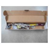 *SCUBA gear*golf clubs*mini chiminea*home décor*tackle boxes*minnow bucket*Penn reel*rods & reels*décor guitar*vintage wash boards*metal clock*enamel pots*knives*bench rest*metal plant stands*dolly tires*misc glassware*vintage Pyrex nesting bowls*headache rack*grill guard*steel traps*vintage hand crank grinding stone*costume jewelry*nesting box*cast iron skillets*birdhouse*fishing décor*vintage well buckets*wood doll bed*decorative water well*chiminea*air mattress*metal candle décor*decorative windmill*Coleman lantern*new sink faucets*metal car banks*