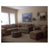 Full house! Beautiful sectional, overstuffed chair and ottomans Dinette Set Queen Bedroom set Day bed, bedding Desk, computer, printer Stereo, turn table, speakers, VHS collection Lamps, art, area rugs, decorative Full kitchen, baker's rack Patio furniture |