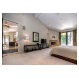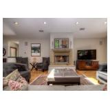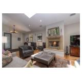 There are a number of art items, decorative items, designer bedding, kitchen items, coffee table books, DVDs, flat screen smart TVs, outdoor plants, and many other household goods.