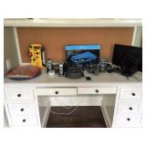 There are also a large number of decorative items, crystal items from designers such as Tiffany’s, Daum, and Waterford, designer bedding, silk taffeta curtains, kitchen items, books, a vintage Bolex projector, CDs, a Bose sound system, TV and sports memorabilia, and many other household goods.