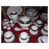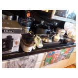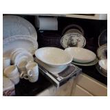 90 pc. Bavaria China Set Tea and saucers sets Barware, crystal Mark Roberts Bavaria Pots and pans China Winfield True Porcelain Blue Bamboo China set Vintage Franciscan China set Bavaria tea set Victoria crystal glass New Luminaro 24 pc set New Chafing stainless steel dish Several Platters Several decorative dishes and dish set Small appliances Utensils, bowls, plates Cook Books Food Saver with bags Kitchen Aide Mixer DeLonge Mixer new in box
