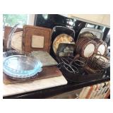 Art work Framed decorative pictures Decorative items Linens sheets, pillow cases, towels Decorative pillows Blankets, quilts Baskets, and more baskets