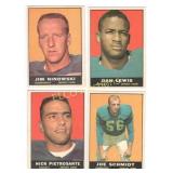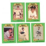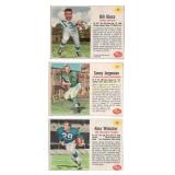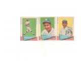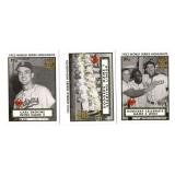 14 (2) 1952 Bowman Baseball cards, Surkont & Hooper Max Surkont #12, Bob Hooper #10 25 1955 Bowman Baseball Shantz & Shantz #139 Bob Shantz & Bill Shantz pitcher & catcher for the Kansas City A's 26 1961 Topps Baseball "Larsen Pitches Perfect Game" Baseball Thrills card #402 36 1961 Topps Baseball Roy Campanella "1951-53, 55 MVP" card #480 39 1960 Fleer Baseball Christy Matthewson #2 Baseball Greats 43 (2) 1960s Jack Pardee Football cards, Philadelphia 1969 Topps #12, 1964 Philadelphia #92 46 (2) 1964 Philadelphia Football cards, Baker Sam Baker #127, Bears' Play of The Year #28 47 (3) 1963 Topps Football cards, Glass, Gabriel Bill Glass #20, Roman Gabriel #37, Lou Michaels #130 48 1961 Topps Baseball "Ruth Hits 60th Homer" #401 Baseball Thrills card 56 (3) 1969 Topps Football Dallas Cowboys cards Chuck Howley #97, Craig Baynham #122, Lance Rentzel #31 57 (4) 1973 Topps Football Dallas Cowboy cards Calvin Hill #35, John Niland #10, Walt Garrison #421, NFC Semi-Final Game #133 58 (5) 1974 Topps Football Dallas Cowboy cards Walt Garrison #335, Calvin Hill #95, Larry Cole #478, Craig Morton #161, NFC Semi-Final Game #461 59 (4) 1975 Topps Football Dallas Cowboys cards Bob Lilly #175, Charlie Waters #59, Mel Renfro #428, Walt Garrison #341 61 (2) 1967 Philadelphia Football cards, Lilly/Renfro Bob Lilly #55, Mel Renfro #59 65 (2) 1962 Post Cereal Football cards, Perkins Don Perkins #144, Bill Howton #140 67 (4) 1978 Topps Football Dallas Cowboys cards Ed "Too Tall" Jones #429, Drew Pearson #350, "1977 NFL Passing Leaders" #331, "Cowboys Team Leaders" Checklist card #507 70 (3) 1962 Topps Baseball cards, Francona, Minoso Tito Francona #97, Don Larsen #33, Minnie Minoso #28 73 1962 Topps Baseball League Leader card #51 American League Batting Leaders 74 (2) 1962 Topps Baseball League Leader cards #57/58 American League Pitching Victory Leaders & National League Pitching Victory Leaders 75 1962 Topps Baseball League Leader card #59 "1961 American League Strikeout Leaders" 76 (2) 1962 Topps Baseball League Leader cards #55/56 "1961 American League ERA Leaders" & "1961 National League ERA Leaders" 80 (2) 1960 Fleer Baseball cards Ott & Evers Mel Ott #36 & John Evers #57 87 (3) 1961 Fleer Baseball cards, Joss, Lombardi Addie Joss #117, Ernie Lombardi #55, Tony Lazerri #54 88 (2) 1961 Fleer Baseball cards, Speaker & Collins Tris Speaker #79, Eddie Collins #16 90 1980 SSPC Baseball Immortals Rogers Hornsby #27 1st Printing 95 (3) 1975 Topps Baseball MVP cards, "1951-1953 Most Valuable Players" cards #189-191 96 (5) 1975 Topps Baseball MVP cards "1954-1958 Most Valuable Players" cards #192-196 97 (5) 1975 Topps Baseball MVP cards "1959-1964 Most Valuable Players" cards #197-202 98 (10) 1975 Topps Baseball MVP cards "1965-1974 Most Valuable Players" crds #203-212 99 2000 Topps Baseball chrome Mark McGuire #401 Rookie card reprint 100 (2) 1986 Donruss Rated Rookie cards, McGuire, Jackson, Mark McGuire #46, Bo Jackson #35 101 (5) 1987 Hygrade "Baseball's All--Time Greats" Clemente, Campanella, Berry, Banks, & Aaron 102 (5) 1987 Hygrade "Baseball's All-Time Greats" Ruth, J. Robinson, F. Robinson, B. Robinson & OTT 103 (5) 1987 Hygrade "Baseball's All-time Greats" Kaline, Hornsby, Grove, Gibson, & Gehrig 104 (5) 1987 Hygrad "Baseball's All-Time Greats" Foxx, Ford, Feller, Dimaggio, & Cobb 105 (5) 1987 Hygrade 'Baseballs All-Time Greats" Musial, Mays, Matthewson, Mantle & Kiner 106 (3) 1990 Post baseball cards, Mattingly & Ryan Don Mattingly #1 of 30, Nolan Ryan #11 of 30, & Mark Grace #14 of 30 107 (5) Emmitt Smith AZ Cardinals cards 2003 Topps Total #265, 2003 Donruss GE-3, 2003 Topps "Bowmans Best" #10, 2003 Topps Finest #14, 2003 Topps #14 108 (3) MLB jersey cards, Wood, Bay & Penny 2005 Donruss Brad Penny #TT-5, 2005 Upper Deck Jason Bay #MM-JB, 2005 Upper Deck Kerry Wood GJ-KW 109 (4) 1997 Upper Deck "Eye of a Champion" cards Troy Aikman #59, Michael Irvin #50, Emmitt Smith #40 & Deion Sanders # 36 110 (6) 1997 Upper Deck Black Diamond cards, Aikman, Smith, & Irvin 111 (5) 1997 Upper Deck Dallas Cowboy cards Smith, Sanders, & Irvin 112 (6) 1997 Donruss National Treasures Dallas Cowboys cards, Smith, Sanders & Irvin 113 (4) 1997 Bowman's Best, Smith, Aikman, & Sanders Emmitt Smith # 30, Troy Aikman #10, Deion Sanders #62, Michael Irvin #91 114 (3) 1996 Topps Laser, Irvin, Smith, & Aikman Emmitt Smith #15, Troy Aikman #83, & Michael Irvin #41 115 (2) Topps football cards Blanda & Johnson 1975 Topps George Blanda & 1974 Topps Randy Johnson #419 116 (2) Topps glossy Inserts, Tarkenton & Woodeshick Fran Tarkenton #15 of 33, Tom Woodeshick #16 of 33 123 (2) 1970 Topps Football, Griese & Tarkenton Fran Tarkenton #80, Bob Griese #10 124 (2) 1970 Topps Football, Butkus, & Pardee Dick Butkus #140, Jack Pardee #68 126 (2) Topps Game Used Memorabilia Cards, Boggs/Bench 2014 Topps Heritge Wade Boggs Jersey card #CCR-WB, 2013 Topps Johnny Bench Bat card #60R-JB 128 1992 Kellogg's College Basketball Greats, Hakeem Olajuwan #11 of 18 129 (3) eTopps Houston Astros Cards 2005 Astros First World Series #ES19, 2005 Minute Maid Park #13, 2005 Houston Astros #108 130 (3) 2001 Topps " 1952 World Series Highlights" "Carl Eskrine wins game 5" #52WS-5, "Dodgers Game 1 Starting Lineup" #52WS-1, "Dodgers Celebrate game 3 win" #52WA-3 131 (4) 2001 Topps "1952 World Series Highlights" "Yanks Slip Past Dodgers 2-0" #52WS-4, "Yankees Celebrate Martin's Homer" #52WS-2, "Reynolds Relieves Lopat in Game 7" #52WS-7, " Stengel Congratulates Reynolds" #52WS-6 132 (2) 2013 Topps Commemorative Patch Cards Jackie Robinson #CP-44, Stan Musial CP-50 133 (2) Autographed Terry Labonte Cards 1997 Upper Deck Local Legends #108, 2000 Upper Deck Victory Circle # 38 134 (3) Topps Commemorative Patch Cards 2013 Ian Kinsler #CP-37, 2014 Allen Craig #CP-5, 2013 Giancarlo Stanton #CP-11 135 (3) Topps Heritage Clubhouse Collection Jersey Cards, 2012 Josh Hamilton #CCR-JH, 2013 Rick Porcello #CCR-RP, 2014 Jay Bruce #CCR-JBR 136 (11) 1987 Jiffy Pop Series R
