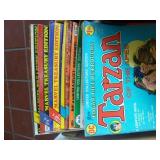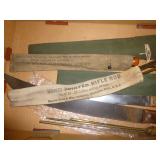 ANTIQUES: BUTTER CHURN ON STAND, SM. OIL ADVERTISTING TINS, GRINDER, HOG SCRAPPERS, HANES, VINTAGE CLOTH BANK BAGS, CROCKS, SLEIGH BELLS, ANTIQUE WOOD TOOLS, OLD GOLDEN BOOKS, COMIC BOOKS, & OTHERS, SAD IRONS, MILITARY PHONE & MISC ITEMS. MILK CANS & OIL LAMPS, LG. LOT OF CHRISTMAS-SHINEY BRIGHTS & STRING LIGHTS IN BOXES. NOT ALL SHOWN. FURNITURE: DROP LEAF TABLE, ROUND STANDS/TABLES, COFFEE TABLES & END TABLES, CHILD DOLL WARDROBE, LIBRARY TABLE, SERVER, FILE CABINETS, CHEST OF DRAWERS. COLLECTIBLES: BELT BUCKLES, KNIVES, & NASCAR ITEMS, SPORTS CARDS, FOOTBALL COLLECTIBLES, DIE CAST PLANES, AND MISC. TRUCKS, RECORDS, VCR'S & PLAYER, CASSETTES, DVD'S, RADIOS & ELECTRONICS, HUNTING ITEMS & GUN CLEANING KIT. MISC: BAKING PANS & DISHES, SILVER PLATE SILVERWARE SET. PICTURES & HOUSEWARES. THIS IS A SM. LIST, ONE MORE TRAILER TO BE UNLOADED AND PICTURES TO FOLLOW. TOO MANY ITEMS TOO NUMEROUS TO MEMTION.