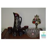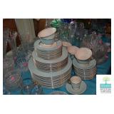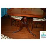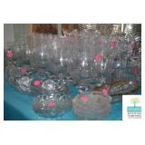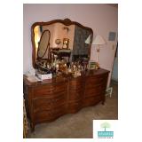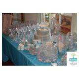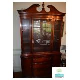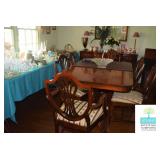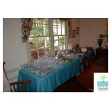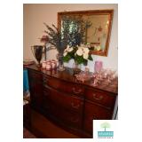 Dining Room: Duncan Phyfe Style Dining Room Table and 6 Chairs, Mahogany Buffet, and Matching China Cabinet, Crystal, Glassware, Smalls, Mirror, Lamps, and More.