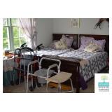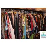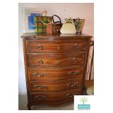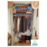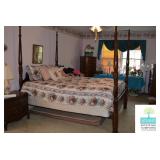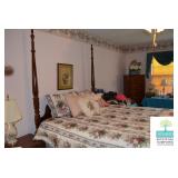 Bedroom #2: Queen Four Poster Bed, Vanity with Stool, Vintage Nightstand, Vintage Dresser with Mirror, Vintage Lingerie Chest, 7-Drawer Jewelry Cabinet, Purses, Women’s Clothing (L), Men’s Clothing L-XL, Justin Boots (Some New with Tags), Bathroom Accessories, Art, and More.