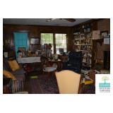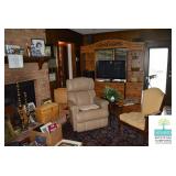 Family Room: Sofa, Pair of Recliners, Books, Gun Cabinet, Media Center, Small Chest, Side Tables, Rug, Smalls, and More.