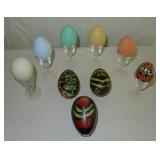 Collectible Steins. Ceramic and Glass Steins marked 2452 - Made in Germany and measures 9.5" Tall. Also includes a small painted glass stein. Condition: Good to Very Good |