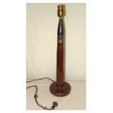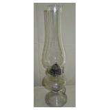 Vintage Kerosene Oil Lamp. This pedestal oil lamp with finger handle measures 14" Tall including the chimney. The thumbwheel reads "Made in USA". Condition: Very Good for age |