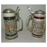 Collectible Steins. Pair of Beer Steins with Ship and City Scenes. Both measuring approx. 9" Tall. Condition: Very Good |