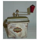 Vintage Coffee Mill. 1950's GESKA Coffee Mill or Grinder. Bakelite and metal construction - made in Germany. Measures 7" Tall with handle. Condition: Very Good for age |