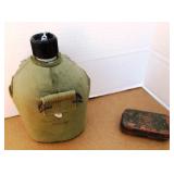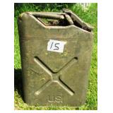 Old army jeep or truck jerry can w/ olive green paint 1960s vintage. |