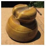 Pitcher and Teapot. Vintage Teapot of Fruit that appears Hand-Painted measuring 5.25" Tall. Also includes a Marcrest Oven-Proof Stoneware Pitcher. This has 2 chips as pictured and measures 8" Tall. Condition: Good to Very Good |