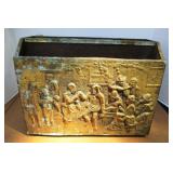 Vintage PEERAGE England Embossed Brass Wooden Magazine Holder/Rack. Completely solid and firm throughout! Wooden exterior bottom base! Upper front has Amazing - Retro - Fine Craftsmanship - Artsy Details throughout! Very Well Made! Very RARE |