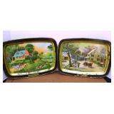 2 Vintage Currier & Ives Metal Serving Trays American Homestead Winter 1868 and American Homestead Summer 1868 Fair Condition |
