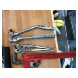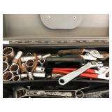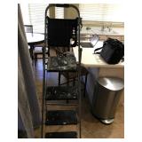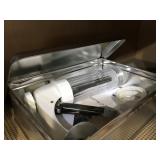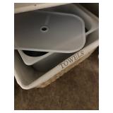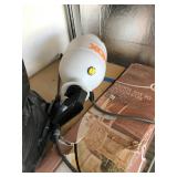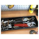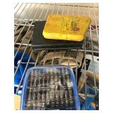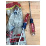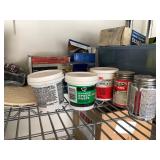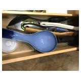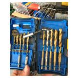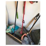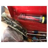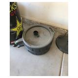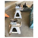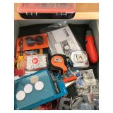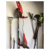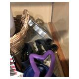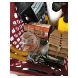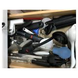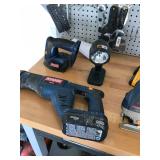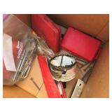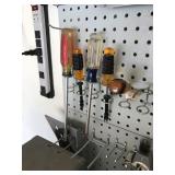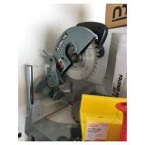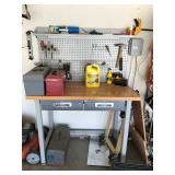 TOOL BENCH STANDING SHOP LIGHT YARD TOOLS TORO ULTRA BLOWER EZ UP TENT POWER TOOLS CAST IRON POT AND FRYING PANS (RIDGEWAY BY KELTY) RYOBI SET WITH EVERYTHING POWER CORDS DRILL BITS FLOOR JACK AND JACK STANDS DELTA CHOP SAW 3 SMALLER TOOL BOXES BLUE SANGO KITCHEN PLATES AND BOWLS THE PAMPERED CHEF LE CREUSET MADE IN FRANCE PYREX MEASUREING CUPS PYREX LINENS SILVER WARE BOOKS POTS AND PANS PIER 1 MIXINF BOWLS