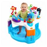 Baby Einstein Rhythm of the Reef Activity Saucer. The Baby Einstein Rhythm of the Reef Saucer is swimming with activities that your baby will love! This is a top item in our Baby Registry. Ocean sounds and classical melodies keep little voyagers entertained. Plus, the seat rotates 360 degrees so baby can reach all the fun ocean-themed toys. Over 11 activities include Octopus spiraling bead popper, spinning Orca whale, ratcheting crab with tags, bead chaser, electronic piano and tropical fish teething stalk. Three height adjustment settings grow with baby, and links are included to add more toys. Dive in to this adorable saucer that you and your baby will soon treasure.New!! Retail Price $67.99 |
