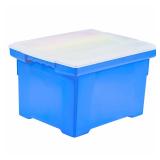 Storex Plastic File Tote Storage Box, Letter/Legal, Snap-On Lid, Blue/Clear. For storage that needs to be quick and simple there’s the Storex Storage Tote. Accommodating of hanging folders and water-resistant, the storage tote is a great alternative to cardboard banker boxes. The snap on lid or locking handles ensure that tote contents stay put through tosses and tumbles.Small Crack In The Lid. New!! Retail Price $26.50 |
