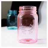 Pink Mason Jars 2-Pack. The vintage Glass Mason Jars are a classic addition to any atmosphere. Weather you want a shabby chic wedding or a garden decor in your home, the Glass Mason Jars is a excellent choice. These jars do not come with a lid so they're used mostly for displays. The jars are made of thick glass so you'll end up with a robust design. New!! Retail Price $3.99 |