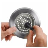 OXO Sink Strainer. Never clog your sink again with the OXO Stain-Resistant Sink Strainer. This standard sized sink strainer is stainless steel with a silicone and nylon center. Now you won't have to worry about what's gone down the drain – and it's dishwasher safe. Replace that old strainer with this new, modern look that will make cleaning out the sink easy.Brand New!! Retail Price $7.99 |