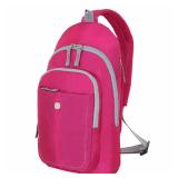 SwissGear 16" Sling Bag - Pink. The SwissGear 16" Sling Bag in Pink is a sleek and trendy tote for your work. The roomy main compartment will easily hold your books and notebooks, and the front pocket is perfect for pens, keys and your phone. This all-purpose bag even has a back slot to keep your laptop safe and protected.Brand New!! Retail Price $29.99 |