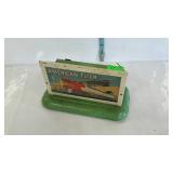 Tillett- Hash Online Auction 1 Floral arrangements accessories: dried flowers, baskets, artificial flowers, vases, totes and trash cans 1 PLEASE READ:The auction starts to close at 6:04 pm in numerical order with one lot closing every 15 seconds. The auctions does not all close out at one time. If a lot has a bid placed on it with under a minute left, it will add another minute to the clock and will continue to do so until all bidding ... 2 Books and movie lot: VHS tapes, bible audio tapes, Halloween lights, Topps baseball coin set 6 Five boxes of dishes & cookbooks, hard back books, kids books, briefcase, baseball books, and Martha Stewart picture frame 7 Six totes/containers of flower arrangements accessories, vases, baskets, Spanish moss 8 Three aviation NAV/COMM radios, Narco Superhomer, Narco Mark 12, and king KX 170b 11 Nine Railroad cars: four Missouri Pacific, Lionel Virginia is for lovers, American flyer caboose 12 Gilbert American Flyer train cars with boxes: Missouri Pacific, car 639, C&N.W.R.Y. Car with telephone poles, 3/16" gauge 17 7 railway pieces: railroad crossing, signal, crane house, Lionelville guard house, Gilbert American Flyer and light tower 19 F.Y.&P. Engine and 2 station buildings- American Flyer and Glen Ellyn metal litho train stations, engine and 88 car 21 22 American Flyer S Gauge illuminated passenger car Missouri Pacific Eagle Pacific with box 23 American Flyer S Gauge illuminated passenger car Missouri Pacific Eagle Pacific with box 24 Lionel trains cars, six pieces: Southern 9700 and caboose, Canadian National, D.L.&W, Lionel lines 1679 box car 25 Heathkit proportional radio control system and transmitter manuals and older FLIGHT book, worn 26 Boxes of Radio Tubes: standard brand, Sheldon, RCA, Sylvania, GE, national union 27 Lionel train cars: Conrail, Missouri Pacific, refrigerated milk car, Republic Steel, caboose 6357 28 Box of train car empty boxes, pieces of track, transistor tubes and radio parts, toy car 29 Tyco locomotive with operating headlight- Pennsylvania 4866 with box 32 Eight train cars: Pennsylvania railroad, A.T&S.F., American Flyer reading lines coal car, Lionel lines 2460 crane car, Lehigh New England, Gulf tanker, two American Flyer passenger cars 34 "N" scale train cars: Bachmann old timers, the American 4-4-0 locomotive, plus two larger engine and caboose 36 Group of train accessories: Gilbert American Flyer 702 track, model motoring track, gauge parts, station stand and shoe box of miscellaneous 38 Group of Lionel and Bauchmann accessories: village barn and station, automatic gateman, and loose pieces 41 Lionel flag-tag relay racing kit with cars and track, not sure if it's complete 43 45 Hubley Kiddie Toy airplane, metal construction, 10 inches long 46 American Flyer transformer plus , gears and parts, hose fittings, 47 Toy airplane parts, controller, body parts, plus miniature blue plastic planes 48 Wally Summers' Gollywock airplane model, rubber power, by Midwest model with box 49 Wright Brothers 1903 Flyer model airplane by Multiple Toymakers in box 50 Trixter stunt Flyer model airplane in box by Andrew's Models 54 Stereo mixing equipment: Realistic mixing console with box, Archer audio mixer and realistic microphone 55 Five radio controllers: world engine Mark II transistors, fly zone 3 channel digital radio control, tower hobbies digital, heathkit model GDA-405-D, and GDA-57-1 56 Train accessories: metal and foam tunnels, tin garage, loco-smoke liquid, control panel top only, tin signal light 57 Elenee toys flying tiger fortress wooden model airplane, tail piece broken 59 Roughneck storage tote and box of pose strips, electronics cords 61 Books: At Dawn we slept, T-6G flight handbook, world's greatest mysteries, greatest fighter mission, general Washington and the jackass, birds of eastern North America, the great houses of London 62 Vintage Erector set with giant Ferris wheel, not sure if it's complete, red metal box, 63 RCA radio tube box filled with RCA, Sylvania, and GE tubes plus some literature 64 Vintage Erector set with reversing electric engine broiler parts, not sure if it's complete, blue metal box 69 Tray of miniature airplanes and helicopter. Most are metal road champs, plus Corgi concord 70 Red airplane pedal car frame. Approximately 36 inches wide by 46 inches long 71 Group lots framed picture, sports pennants, small hockey stick, magnetic signs, 72 OHLSSON & RICE O&R Compact Engine Carburetor Diaphragm Cover 75 Framed pictures: includes Hancock Savings & Loan thermometer, blue boy, and town scene 77 80 Decoys wood carvings supplies: paint set, magazine, decoys, pattern book 81 Tray with tea set, ship wheel pen holders, hanging candle holder, Asian brass bowl 82 15 vintage stereo tapes: Allan Sherman, Smother Brothers, my fair lady, percussion, Shelly Berman 84 Pan Am 747 toy airplane, 26 inches wing span, missing front wheel, ATC toys 86 Pan American super jet toy airplane, 18 inches long, Daiya toys 88 Metal railroad guard house with crossing sign, battery part lose 89 Three railroad accessories: high speed trains, crossing sign, tower 90 Plasticville airport hangar kit AP-1 with box (box is rough) 91 Gilbert American Flyer whistling billboard advertising 93 Windup airplane with airport base, Biller Airlines, needs repairs 94 Friction toy airplane, some wheels stuck, 18 inches wing span 95 United States Air Force toy airplane, engine loose, 12 inch wing span 98 TWA friction airplane made in Western Germany, 20 inch wing span 103 Metal sign: WANTED Good Woman 9x12 inches Must be able to clean, cook, sew, wax aircraft and navigate. Must have air plane and hanger 104 Mounted runway light from old whiskey - 66 given to fellow tail dragger pilot, 23 inches tall 106 Wooden model boat by Rico, measures 10 inches long with box 113 Green and orange flying helmet with Gentex liner size extra large 115 Two boxes of train track, some marked American Flyer and controller 117 Blue tote railroad track, the outside of the 