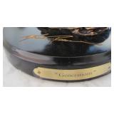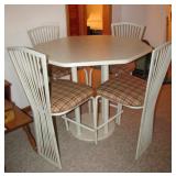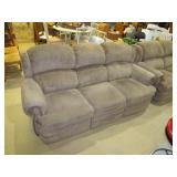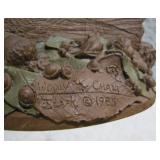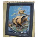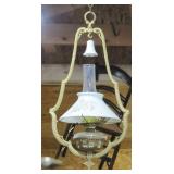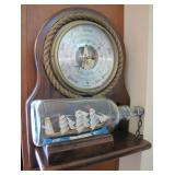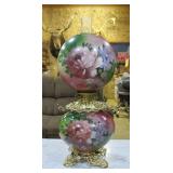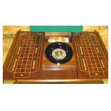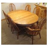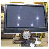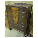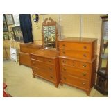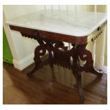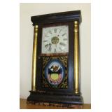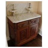1840’s large closed front cherry china cupboard; oak bridged twin pedestal round oak dining table w/4 leaves (114”), 6 chairs; lg. 8ft. 2pc. ptd. step back cupboard; pine Habitant log tavern table; dinette table & chairs; pub height table & chairs; twin reclining sofa & loveseat set; living room chairs & ottomans; flat screen TV; inlaid Italian game table w/roulette; living room accent tables & lamps; Victorian marble top parlor table; marble top commode; asst bedroom furniture; large gold gilded foyer mirror; GWTW parlor lamp; clocks; Leroy Neiman Golf print; LaGassey locomotive, 3-D Cutty Sark ship, Victorian still life & other framed art; mini frig; portable room & window air conditioners; fans;