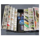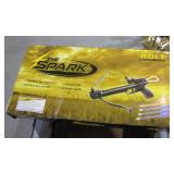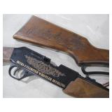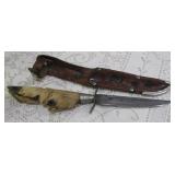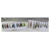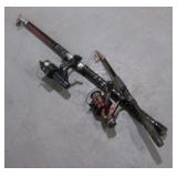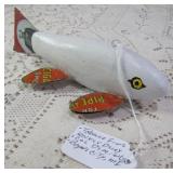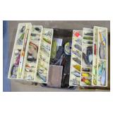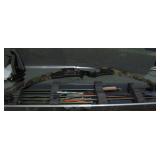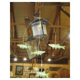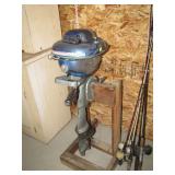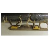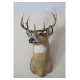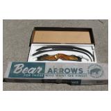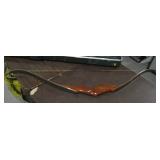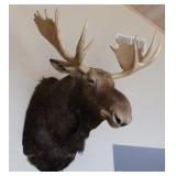 Lg. shoulder mount moose & whitetail mounts; caribou antlers; Quail & salt water fish mounts; Bear take down bow in orig. box; recurve & other compound bows; Carl Christiansen trout plaque; Marble Arms fish grabber; asst. fish spearing decoys; tackle boxes, fishing poles & related; waders; old boat motor; wooden duck decoys; duck calls; bayonet w/scabbard; qty. sheath & folding knives; camp gear; Sheridan & Daisy BB pistols & rifles; snowshoes; misc. ammo; tree stand; Remington 742 carbine & 1903A3 National Ordinance 30-06 rifles;