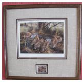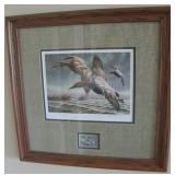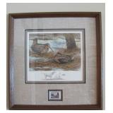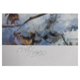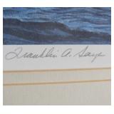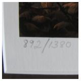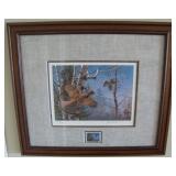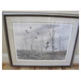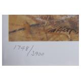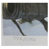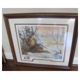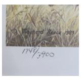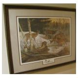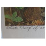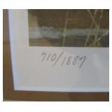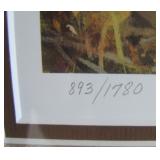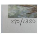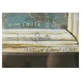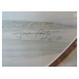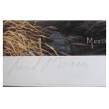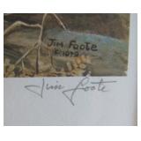 Original 44x31Jim Foote oil on canvas painting of 2 men in a canoe; 6) Jim Foote artist proof’s plus Hertting, Maass, McDonald, Doughty, Vertram, & other wildlife Ltd. Ed. prints;