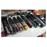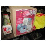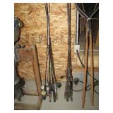 Stihl 041AV chainsaw & BR420 backpack blower; power & hand tools; Neuton elec. mower & garden cart; ladders; garden cart; lawn & garden tools; wheel barrel; lawn furniture; cast iron horse head hitching post; iron wheels; boogie board & tow tubes; life jackets; sm. ceramic kiln;