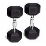 CAP Barbell Rubber-Coated Hex Dumbbells, Set of 2. Sold in pairs Available in 5 to 50 lb pairs Premium, club-quality weights are built to last and withstand any workout environment Made of solid cast iron with a protective black rubber coating Contoured, easy-grip chrome handles Hexagon shaped dumbbell heads are designed to prevent rolling and provide easier storage Rubber heads prevent damage to floors. NEW! In brown box. Retails for $49.99. <131> |