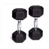 CAP Barbell Rubber-Coated Hex Dumbbells, Set of 2. Sold in pairs Available in 5 to 50 lb pairs Premium, club-quality weights are built to last and withstand any workout environment Made of solid cast iron with a protective black rubber coating Contoured, easy-grip chrome handles Hexagon shaped dumbbell heads are designed to prevent rolling and provide easier storage Rubber heads prevent damage to floors. NEW! In brown box. Retails for $49.99. |