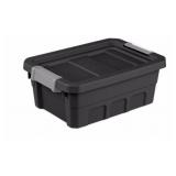 Sterilite 4 Gallon Stacker Tote- Black, Case of 6. This case of 6 black Sterilite 4-Gallon Stacker Totes is handy for all of your storage needs. It features heavy-duty latches to ensure that your items remain securely stored inside. Also, this storage tote has a deep indexed lid surface that allows for exceptional stackability, so you can use space more efficiently. The lid and base of these totes are completely opaque black. NEW! In retail package. Retails for $32.89. |