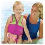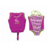 SwimSchool Girls 2 Piece Swim Trainer, Medium/Large. I'm ready for swim training! The SwimSchool 2 Piece Swim Trainer makes learning to swim fun in a 2-piece set, which includes a swimsuit and swim vest. A great value, the swim vest and swimsuit are made of soft, colorful fabric. Swim vest features sewn-in buoyant foam pads to promote pre-swimming positions, floating upright and leaning forward. The 2 Piece Swim Trainer is a key part of the Original SwimSchool Training System by Aqua-Leisure. Girls 2Pc Swim Trainer, Medium/Large: Swim School, Level 2 — Promote Confidence and Play Recommended for children 33-55 lbs (Medium/Large) Great value, swim vest and swimsuit Soft, comfortable fabric in pink and floral print Built-in foam pads for balanced flotation Secure, comfortable fit with adjustable strap and clip. NEW! In retail package. *Item will need laundered before use* Retails for $17.97. |