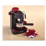 4-Cup Espresso/Cappuccino Maker, Red. Wake up to freshly brewed coffee every morning with this 4-Cup Cappuccino Maker. Equipped with 800 watts and five bars of pressure, this powerhouse will help you start your day with a burst of flavor. The red 4-cup espresso maker also features a steam nozzle for frothing, so you can whip up a multitude of concoctions to suit your mood. Whether you are throwing a party or just using daily you can use the easy pour glass carafe to serve up the rich taste you cherish. Enjoy the benefits of having a miniature café right at your fingertips. This home espresso maker allows you to enjoy the aromatic goodness of your favorite every day java creations. IMUSA 4-Cup Espresso/Cappuccino Maker, Red: 800 watts 5 bars of pressure Steam nozzle for frothing This red 4-cup espresso maker has an easy pour glass carafe. In retail package. Retails for $29.99. |