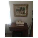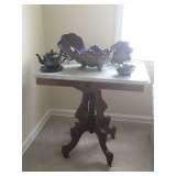 1940's Mahogany Duncan Phyfe Style Dining Room Suit Antique Marble Top Parlor Tables Antique 4-Poster Bed Antique Eastlake Marble Top Dresser Antique 4 Chair Ice Cream Table & Chairs Sewing Machine Vintage Beauty Salon Hair Dryer Antique Cuckoo Clock Noritake "Edgewood" China Sofa Lift Chair Carnival Glass Antique Lady Yard Long Prints Antique Floral Prints Crystal Chandelier 1920's Light Fixtures with Marigold Stretch Glass Shades Antique Kitchen Oil Lamp 2 Tier Mahogany Table Cedar Chest Brass Aladdin Floor Lamp Eastlake Platform Rocker Antique Glassware Linens Some Flow Blue Green Deppression Glass Antique Wicker Rocker Kitchen Misc Household Misc