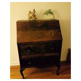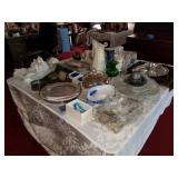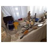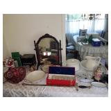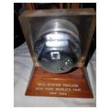 Friday was a great day, but we're determined to liquidate everything from this house, so we're offering a discount of 30 percent off most marked prices! The gentleman of this house spent decades working his way up the ladder at Bell Telephone, and saved a lot of little things along the way. From the pretty glass phone pole conductors to awards and signage, and even the architectural renderings of the Bell Telephone exhibit at the 1964 World's Fair. Since he was intimately involved in organizing that exhibit, he also saved a good deal of ephemera from that iconic event. We also have a combination of antique and mid-century modern furniture including two dry sinks, a huge 1920s sideboard, a beautiful leather chair with birch trim, and a big metal desk. Collectibles include dolls including Effanbee and other major brands, collector plates, and much more to come as the family goes through boxes. Update: Nelson & Co. Colonial kitchenette has been added, as well as a variety of cooking and serving ware from the kitchen. A collection of Dept. 56 Snowbabies has been added. There is a record collection which focuses on the jazz-age music of the first half of the 20th century, as well as cassettes, 8-tracks and CDs. Many books. Numerous small decorative items from ornate picture frames to a Tiffany bud vase to antique glassware. A set of Bavarian gold-rimmed china. A small amount of Ronald Reagan memorabilia. |