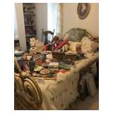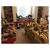 Living room Books electronics Collection of Victorian ladies figurines Artwork Large collection of small figurines Bedrooms: Massive holiday /christmas collections Department 56 - large figurines Train set records sets - record player Vintage dresser Queens size beds Fantastic lift bed Clocks chickens massive line collection & Vintage linens quality clothing in men and women (large size) Dining room Dining room table set Nice light-up hutch crystal glassware Garage Craftsman tools Shop vacs tool boxes fishing gear/reels Eliptical Air compressor Antique Player Piano Vintage toys trucks Precious moments sugar town collection and large doll collection Many wall shelves We always look forward to seeing you at our sales patio set