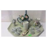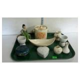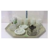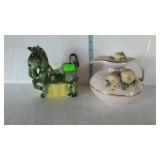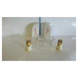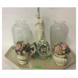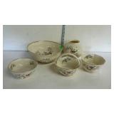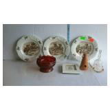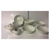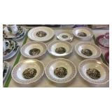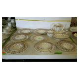 Tillett - Hash June 28 2017 1 Four pictures: Telegraph Hill Lombard Street 1977 San Francisco, two Lionel Barry more pictures Nantucket and old Red Bank, Asian picture 2 Box of scrolls, Egyptian face on parchment, some others on cardboard 5 Victorian fashion print framed measures 17 and a half inches by 23 inches 8 Assorted flatware William Rogers in Hampton silver Smiths, travel scale and Pampered Chef apple peeler 9 advertising poster George W merchants celebrated gargling oil for horses 10 Framed soda drinking duck picture, 13 and a half inches by 16 inches 11 Framed day Lily picture by Kenneth H Hopson, 17 inches by 21 inches 14 17 The United States Navy from the revolution to date by Francis J Reynolds copyright 1917, cover damage 18 Panoramic picture perpetual 62 federal savings view of Washington DC, 62 by 14 inches 19 Three music books, treasure chest for the young pianist, famous marches, dances old and new 20 Ten Little Golden Books: grandpa Bunny, Pluto pup, sleeping beauty, mater and the ghosts light, the bouncy baby bunny find his bed, baby dear, Lassie Cinderella, the three bears, the gingerbread man 21 Four books by T. A. Daly, McAroni Ballads, Madrigali, Carmina 23 Box assortment of books Stonewall Jackson, low carb cooking, Wolfgang Puck, fairy tales, etc 24 Box assortment of kids books, strange animals of the sea, bedtime stories, Lego movie, etc 27 Tray of glassware - ceramic bourbon decanter, etched glass decanter, etched rose paper way, creamer, hobnail vase 31 Seven 16 millimeter films: Six Castle films sports/clown movies and one sports beams champions 32 33 12 comic books, DC superstars Star Spangled War, sergeant rock, Archie series, the inspector 36 Serving basket with glass bottles and vases, Lobster mold, framed ship poem 37 Sunnyslope peaches and nectarines shipping crate wooden and cardboard 38 Two books, women's news September 1964 June 1967, AIGA graphic design USA 5 40 Two scientific American weekly magazines April 9th and April 16th 1921 41 Box assortment of books to include Guide books, trail guide , golf related books and more 42 Souvenir postcards both color and black and white, unused 43 Flat of assortment of guide books, souvenir advertising Maps, permits, milk bottle, programs 44 Two China bowls, Germany Bavarian leaf bowl and Czechoslovakia 45 Four glass bowls: two clear glass bowls, amber Iris pattern bowl, blue grape pattern bowl 46 Glass candlestick holders, divided glass bowl, green divided bowl with chips 54 35 Department of the interior United States geological survey quadrangle maps of United States 55 Four boxes of Halco and Feit candelabra base light bulbs 56 Home decor lot: rooster box, wine decanter, vases, panda bears 62 Home decor plates, bell, happy birthday picture, red glass bowl 67 Sony FM/AM CD kitchen clock radio under the cabinet mount, appears to be new in box 68 Schlitz 1959 advertising clock, please know that it does not light up or run 70 71 Pair of pierced ear studs packs, and prescription glasses 72 Pair of metal wall mount style floral candle holders, seller code MQ 73 Golf theme decorations, fancy cake pop molds and sticks, grass table cover and six bowls with grass and golf tees 75 Box lot: Holland pillow cover, cash box, gift bows, cable wire, tool kit, guitar tuner 76 Party tubs, cupcakes holder, serving platters, basket with Mickey Mouse mat 77 Green glassware- decanter set, covered pedestal bowls, twisted vase 82 83 Martha Stewart collection five place setting china Macy's exclusive. 20 pieces. 84 Three brass candle sticks and Partylite hurricane globe and decorative sand 86 Gibson holiday dishware. Service for six, plus 5 extra plates. 23 total pieces. 88 ruby red flash thumbprint snack plates and stem cups. 16 pieces. 90 Aperitiff stemware glasses - set of six ruby cut-to-clear 91 Etched glassware - five stemware aperitif, and four goblets - one goblet has chip on base 93 Crystal stemware - set of eight wine glasses - matches lot #94 94 Crystal stemware - set of seven water goblets - matches lot #93 95 Glassware - 9-pcs amber oatmeal glass - two dinner plates, three salad / dessert plates, footed creamer, footed sherbet, and two cups 97 Dinnerware - 28-pcs with floral design and gold trim, made in Poland - four plates, ten soup bowls, two serving bowls, and twelve saucers 98 Milk glass dinnerware - 22-pcs grape pattern, Svc-4 plus - with creamer and sugar 99 Glass dinnerware - 22-pcs amber oatmeal glass Svc-6, dinner plates, double handled soup cups, sherbets, oval vegetable bowl, meat platter, creamer & sugar 101 Dishware - 14-pcs Federal brand white iridescent, creamer, sugar, serving bowl, three berry bowls, five saucers, and three cups 103 Franciscan Earthenware china, tidbit bit tray, platter, salt and pepper shakers, cream and sugar 106 107 Depression Ware - 13-pcs White Opalescent American Sweetheart pattern, five 10" dinner, five 9" luncheon, and three 8" salad / dessert plates; 7-pcs Monax petal ware berry bowls; and 3-pcs white opalescent 10" dinner plates with embossed designs 109 Temp-tations serving set - 9" casserole bowl with stand, and nest of two bowls - 6" & 7" Hometown Christmas pattern with holly design 111 112 Fenton silvercrest candlestick holders - pair o of, unmarked 113 Satin glass - blue covered compote with grape designs - has rim chip 115 Teapot - Royal Canadian Art Pottery - minor flea bite on spout 118 Covered casserole with floral trim, made in Austria, chip 119 Dinner plates - ten Royal Minton with floral boarder, made in England 120 Cake plate - Universal-Cambridge, camwood ivory cattail pattern with double tab handles - two minor chips on underside 123 125 Pottery mixing bowl - 8-1/2" with floral design and green trim 126 Stangle Pottery - Blueberry pattern 12" platter, 9-1/2" plate, and 9-1/2" serving bowl 130 Royal Doulton dinnerware set - 44-pcs Valencia pattern English porcelain, Svc-8 with meat platter, and coffee service 132 Royal Albert dinnerware set - 25-pcs Rose G Garla