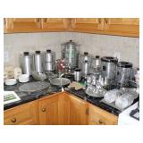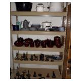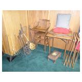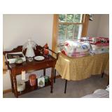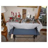 Fine Home Furnishings Antiques and Collectibles: Leather 3 piece sectional sofa, Smith Bros. sofa, Cochrane oak DR set incl. table w/ 8 chairs, 4 leaves, lighted corner cabinet and lighted china hutch, oak end tables and coffee table, leather hassock, Stratford microfiber loveseat and chair w/ ottomans, oak cabinet w/ mirror and marble top, oak drop leaf table, 2 bistro tables w/ bar stools, dinette table w/ 4 chairs, oak Barrister bookcase, Hekman spinet desk, Hitchcock side chair, oak desk and office chair, queen bed, oak tea cart, Victorian chest of drawers w/ mirror, side tables, wash stand, sewing stand, armoires, plant stand, corner etageres’, Art Deco armoire, pine corner TV stand, vintage oak refrigerator, Lane cedar chest, vintage storage cabinet w/ roll top front, musical instruments incl. Lira accordion, Dean banjo and small guitars, Noritake china “Blue Hill”, Crown Ming china “Princess”, linens, wrought iron bench, wicker chairs and ottoman, rattan chairs and ottoman, outdoor table w/ 4 chairs, umbrella and stand, baskets, large collection of pottery incl. McCoy, Gonder, Rum Rill, Haeger, Hall, Hull, Royal Copley, Red Wing, UPCO, and Niloak, Marcrest stoneware, Ranger Joe dishes, antique and vintage kitchen utensils incl. aluminum canister sets, Americana glassware, Revere Cookware, Enamelware, collection of barware pitchers, vintage glass and glasses, stereo equipment, collectible M&M candy dispensers, games, area rugs, wooden crates, golf clubs, Whirlpool side by side refrigerator/freezer, Generac pressure washer, Craftsman 7 ¼ “ circular saw, Pro-Tech 10” compound miter saw, Homelite chain saw, garden tools and supplies, vintage hats, quilts, collection of Tom Clark gnomes, Disney animals, Beanie Babies, handbags incl. Vera Bradley, men’s shoes, art incl. signed prints by Robt. Gartland, Mullen and Bert Seabourn, lamps incl. brass and floor lamp w/ mica shade, crocks, collection of iron bookends and door stops, LP’s, 45’s, child’s wagon, books, children’s toys and books, Graco pack-n- play, cookbooks, rooftop cargo carrier, XM radio, holiday decorations and so many more treasures!