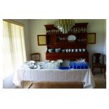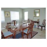 Furniture includes: Pennsylvania House dining room table with 2 leafs; 6 dining chairs Pennsylvania House solid cherry china hutch Chinoiserie table Pair vintage Monarch wing back chairs Broyhill sofa; Stearns & Foster queen sofabed Secretary/bookcase Queen Anne side table French end table Heywood Wakefield dresser/chest End tables, chairs