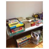 contents of home with lots of smalls & neat collections Paragon high fire kiln Washer, Dryer, flat screen TV, microwave, toaster oven Mid Century furniture, glass top table & chairs, sofa & love seat, 2 king beds, twin bed, pair white tub chairs, lamp tables, brass & glass coffee table, chrome bar stools, custom made inlaid wood folding game table, black lacquer chair, white pedestals, 2 drawer file cabinet, small desk, chest, 4 white upholstered mid century chairs, Cameras, vintage games & toys, doll crib, teapot collection, owl figures, linens, brass lamps, framed art work, books, sewing, patterns, fabrics, art supplies, craft items, luggage, rolling cart, wine rack, bar ware, flower pots, pair hanging lamps, holiday decorations Sterling and Silver Plate, Crystal, china, Pyrex & Corning ware, flatware, Blenko Ladies vintage clothes, purses, shoes, gloves, costume jewelry, 3 fur coats Men's clothes-some vintage & shoes Garage tools, golf clubs, patio table & 2 chairs, |