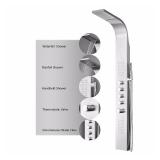 Decor Star 004-SS 64-Inch Stainless Steel Rainfall Shower Panel Rain Massage System with Jets & Hand Shower. 4 stage shower function (Rainfall, Waterfall, Horizontal Massage Spray, Hand Shower) Independent valve control for each shower function, All shower functions can be turned on at the same time. 50 total rainfall nozzles, 100 total horizontal spray massage nozzles UPC, cUPC certified, Thermostatic control minimize the chance of scald Silver stainless steel panel. Item is in original retail package. NEW! Retails for $269.95 <44> |