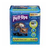 Pull ups Night-Time Training Pants 3t-4t, Boy, Big Pack, 44-Count. Fits boys 3t-4t (32-40-pounds) Pull-Ups night*time training pants for boys feature an underwear-like waistband that helps your toddler learn how to pull them on and off like regular underwear. Pull-Ups training pants feature easy-open sides for quick potty.checks, and unique designs that fade when wet. Pull-Ups potty training pants for boys provide zoned protection where they need it most for maximum absorbency. Glow in the dark designs. To use: expose the training pant design to a bright light for at least 30-60 seconds. Turn off the lights and watch it glow. Item is in original retail package. NEW! Retails for $18.97 |